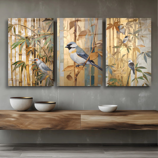 Kuşlar Üçlü Set Cam Tablo