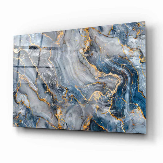 Mavi Gold Soyut Mermer Desen Cam Tablo