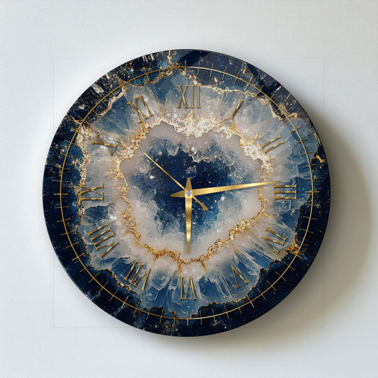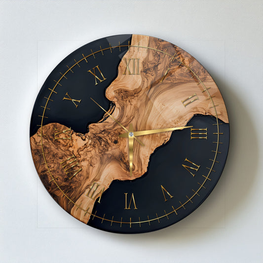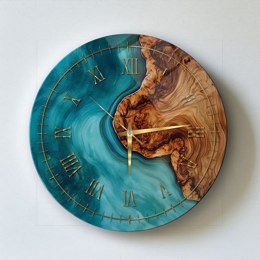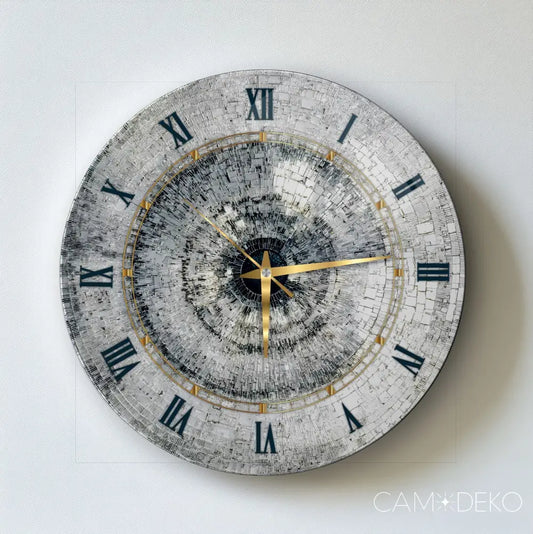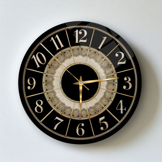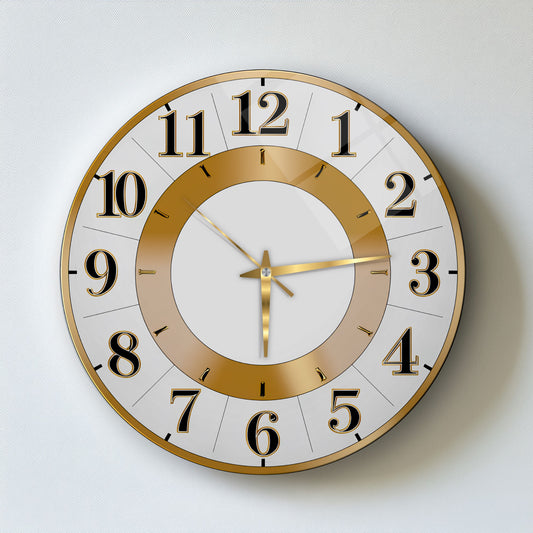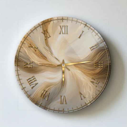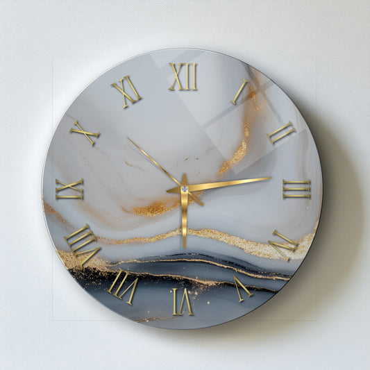 Gold Soyut Mermer Desen Cam Duvar Saati