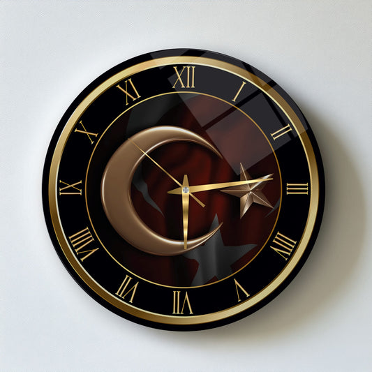 Allah Muhammed Lafzı Dini Cam Duvar Saati