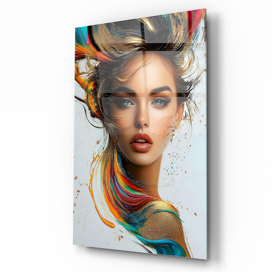 Renkli Kadın Model Cam Tablo