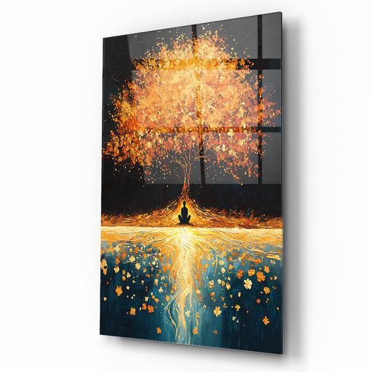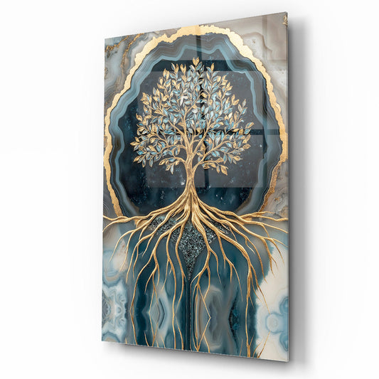 Gold Detayli Hayat Ağacı Cam Tablo