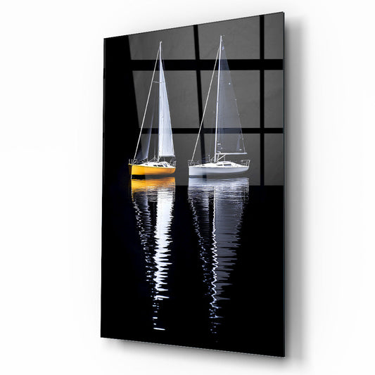 Denizde Yelkenli Manzarası Cam Tablo