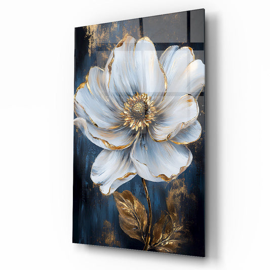 Gold Detaylı Beyaz Çiçek Cam Tablo