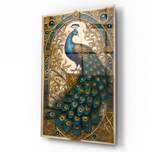 Gold Detaylı Yeşil Tavus Kuşu Cam Tablo