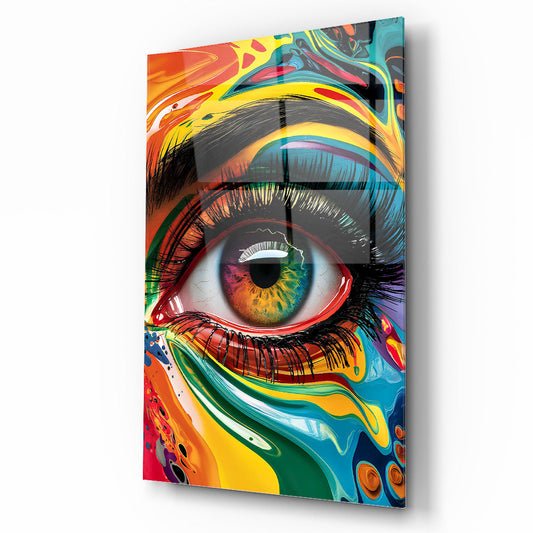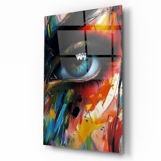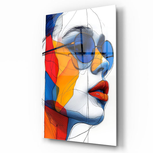 Renkli Gözlüklü Kadın Model Cam Tablo