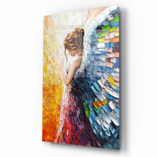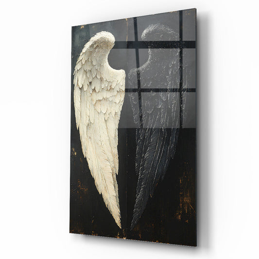 Siyah Beyaz Melek Kanatları Cam Tablo