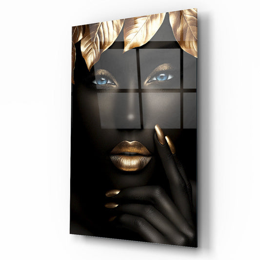 Gold Ypraklı Afrikalı Siyahi Kadın Cam Tablo