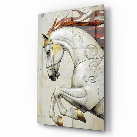 Şahlanan At Cam Tablo