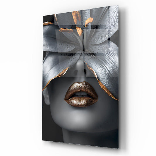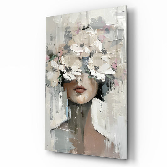 Çiçekli Kadın Cam Tablo