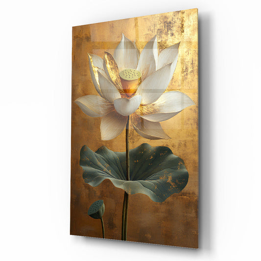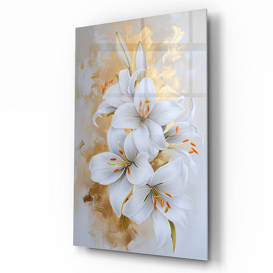 Gold Detaylı Beyaz Çiçek Cam Tablo