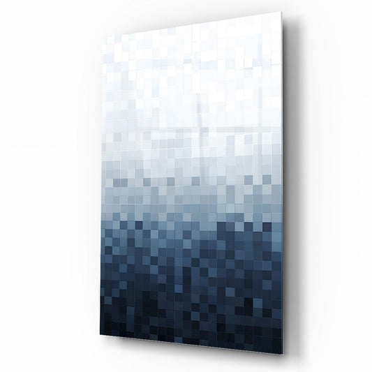 Mavi Beyaz Kareler Soyut Cam Tablo