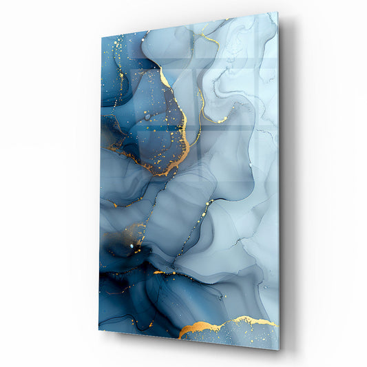 Soyut Mavi Mermer Desen Cam Tablo