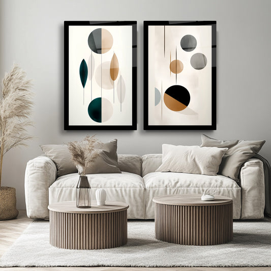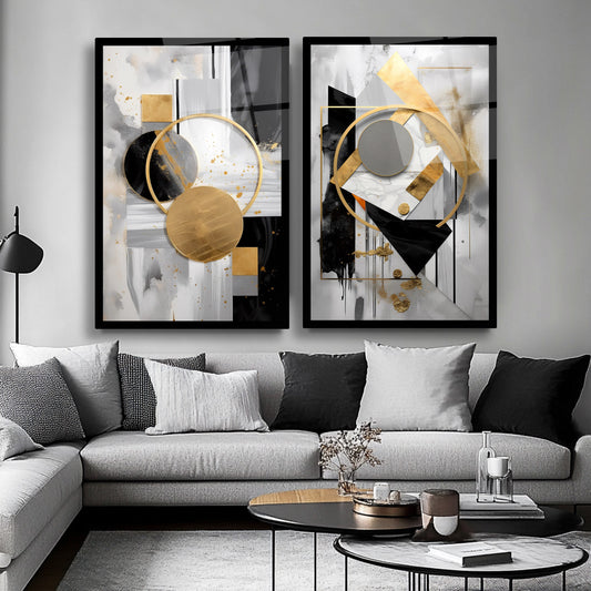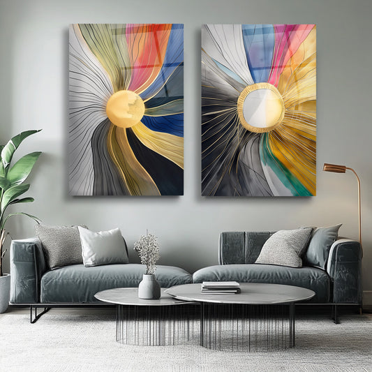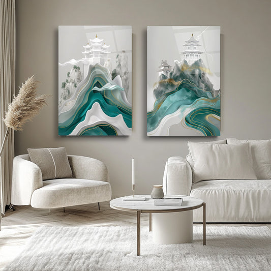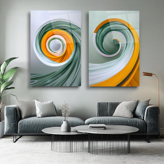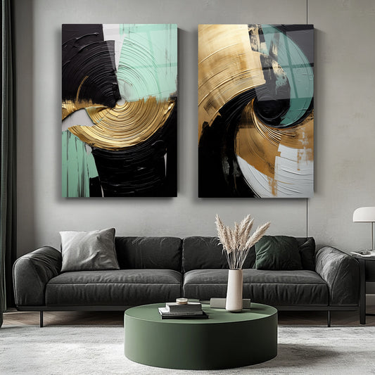 Gold Yeşil Soyut İkili Set Cam Tablo
