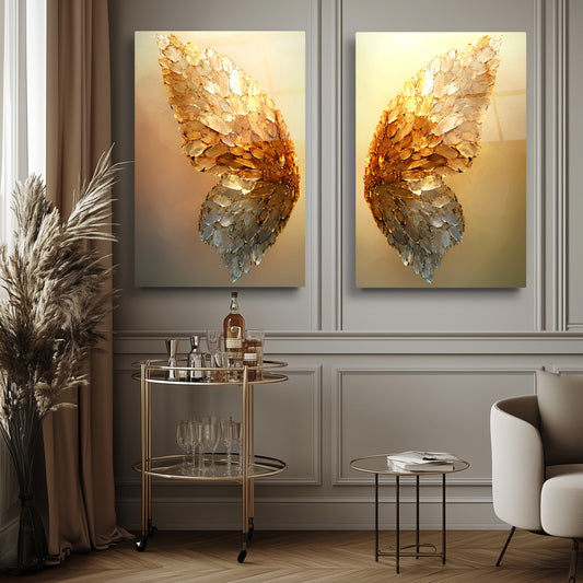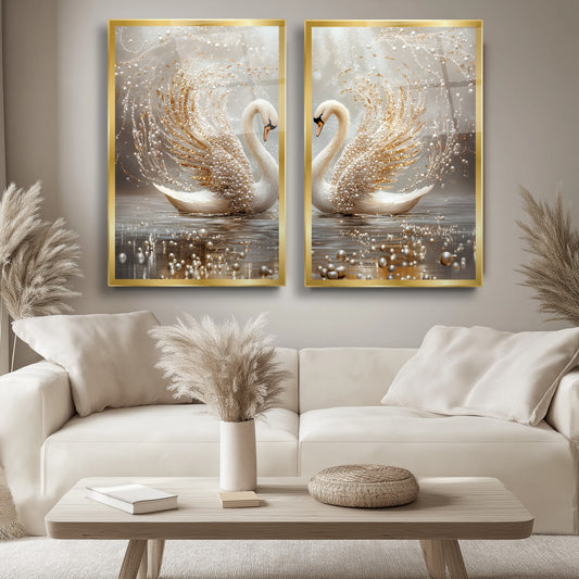 Gold İncili Çifte Kuğular İkili Set Cam Tablo