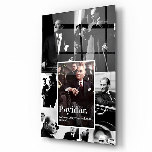 Atatürk Fotografları Kolaj Tasarım Cam Tablo