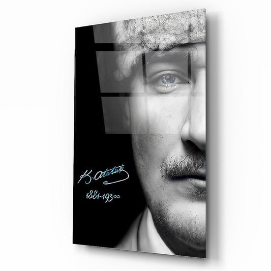 Mavi Gözlü Atatürk Cam Tablo