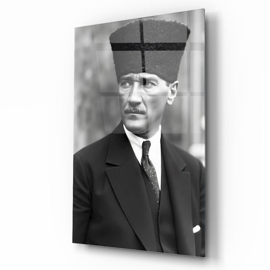 Kalpaklı Atatürk Cam Tablo