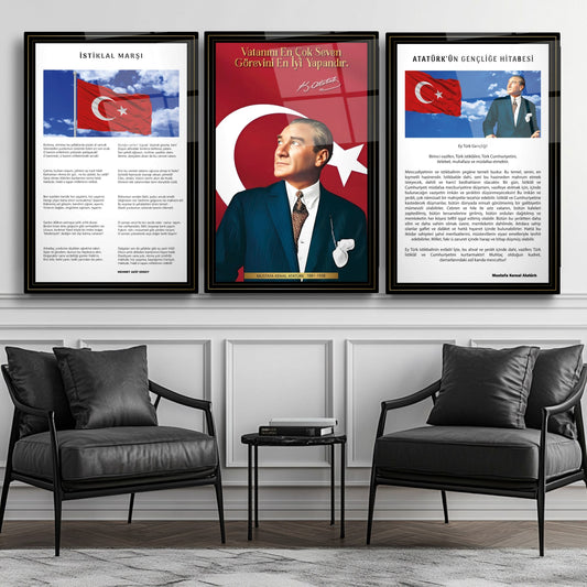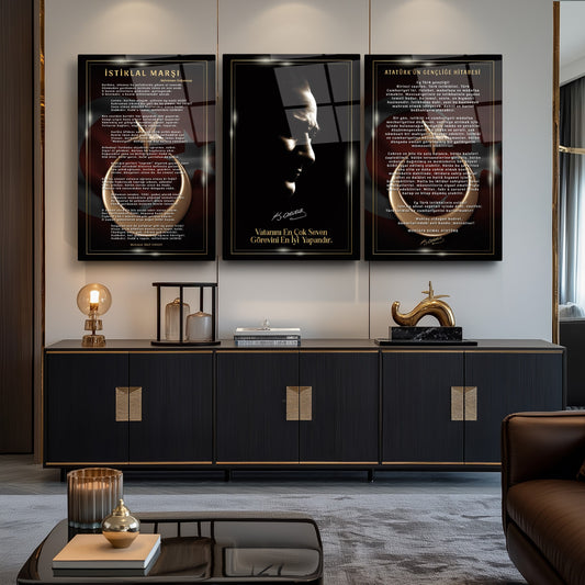 Atatürk Köşesi Üçlü Set Cam Tablo