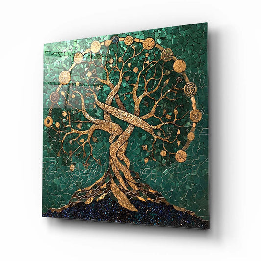 Yeşil Hayat Ağacı Cam Tablo