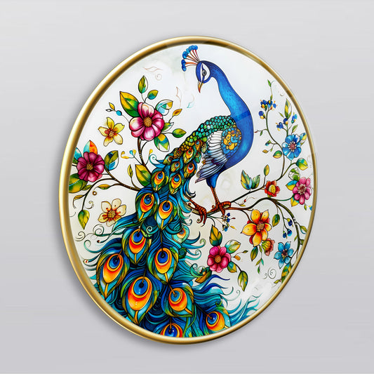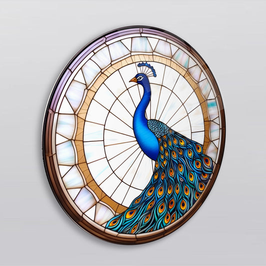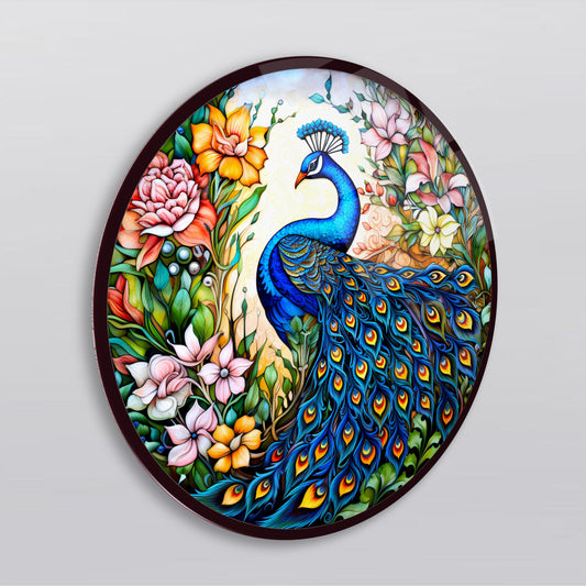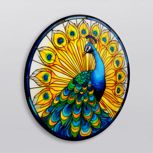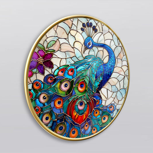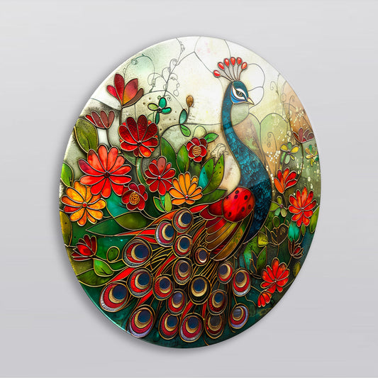 Vitray Desen Tavus Kuşu Yuvarlak Cam Tablo