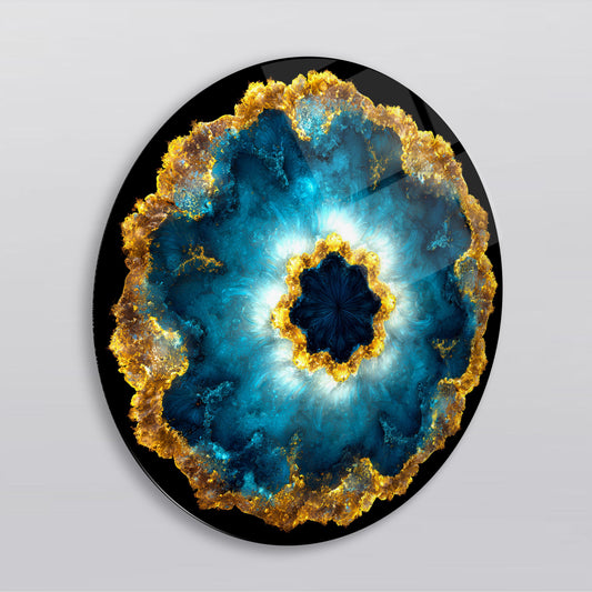Soyut Gold Mavi Yuvarlak Cam Tablo