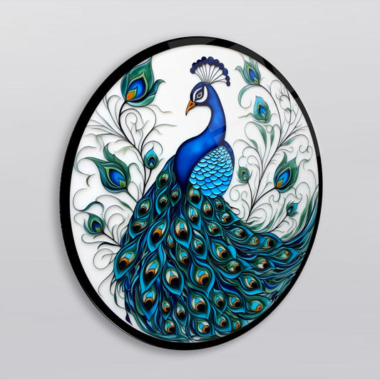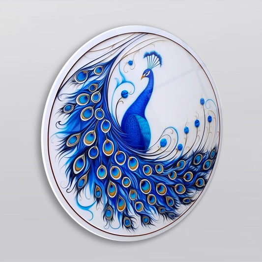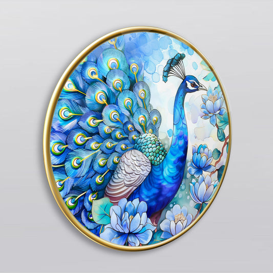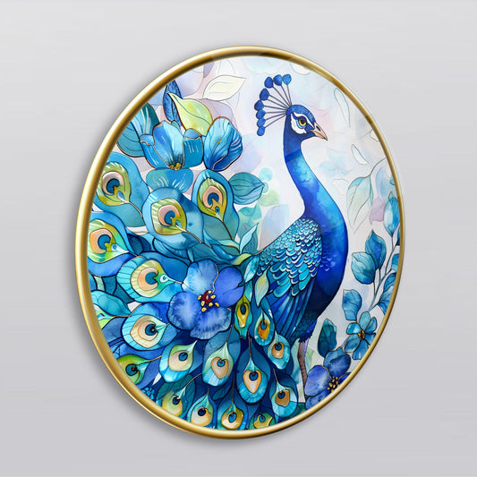 Mavi Tavus Kuşu Yuvarlak Cam Tablo