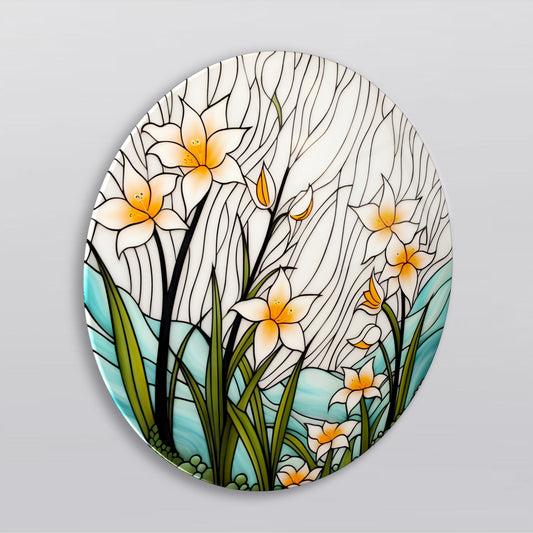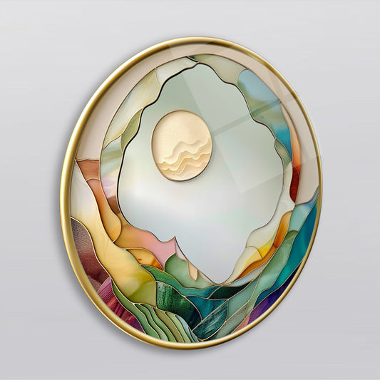 Seramik Soyut Desen Yuvarlak Cam Tablo
