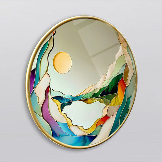 Gün Batımı Vitray Desen Yuvarlak Cam Tablo