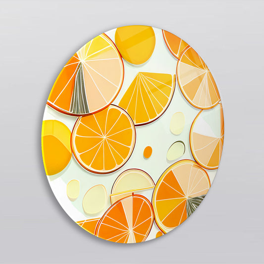 Portakal Dilimleri Yuvarlak Cam Tablo