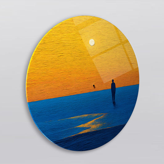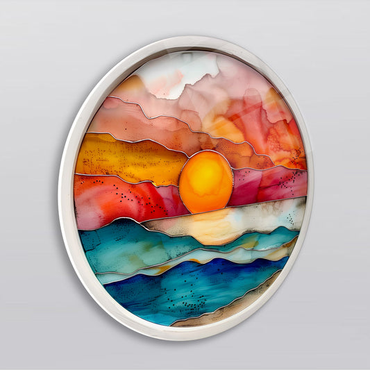 Soyut Gün Batımı Yuvarlak Cam Tablo