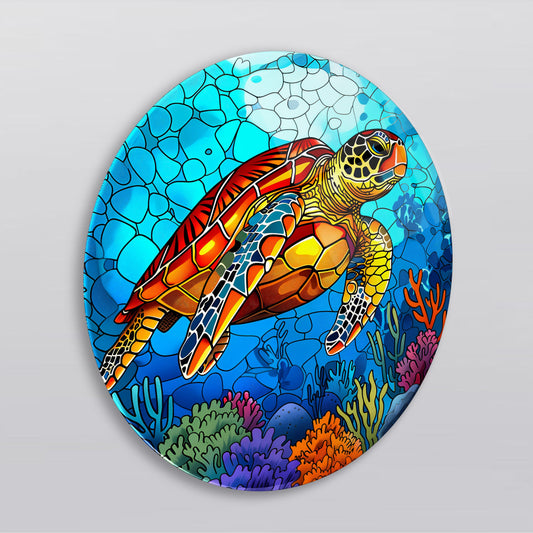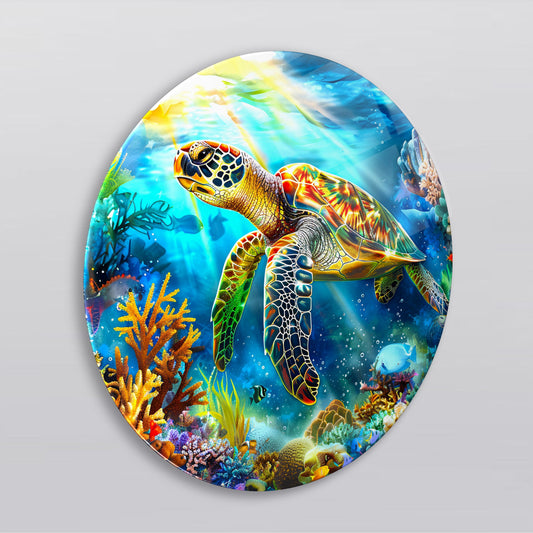 Deniz Kaplumbağası Yuvarlak Cam Tablo