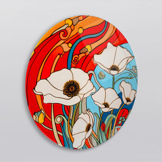 Gelincik Çiçekleri Yuvarlak Cam Tablo