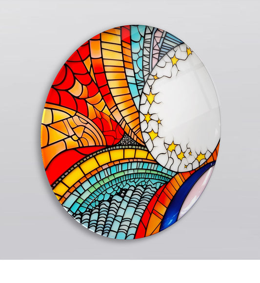 Yıldızlı Gece Yuvarlak Cam Tablo