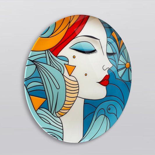 Renkli Kadın Portre Yuvarlak Cam Tablo