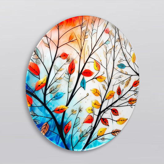 Renkli Yapraklar Seramik Desen Yuvarlak Cam Tablo