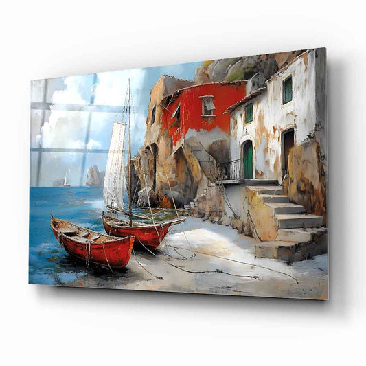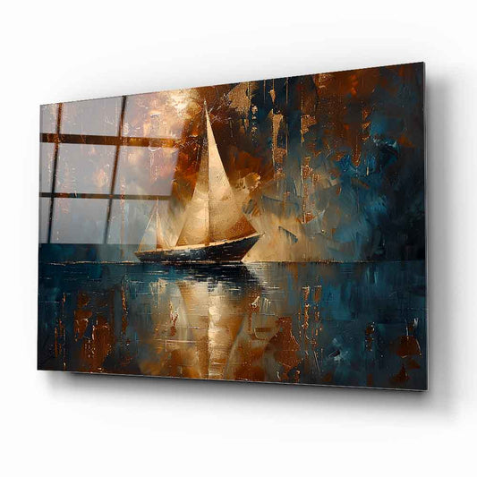 Yelkenli ve Deniz Manzarası Cam Tablo