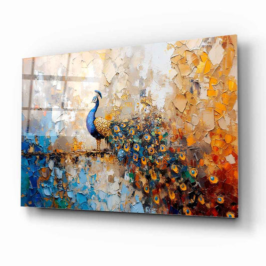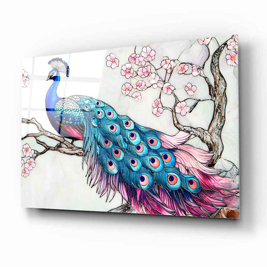 Mavi Pembe Tavus Kuşu Cam Tablo