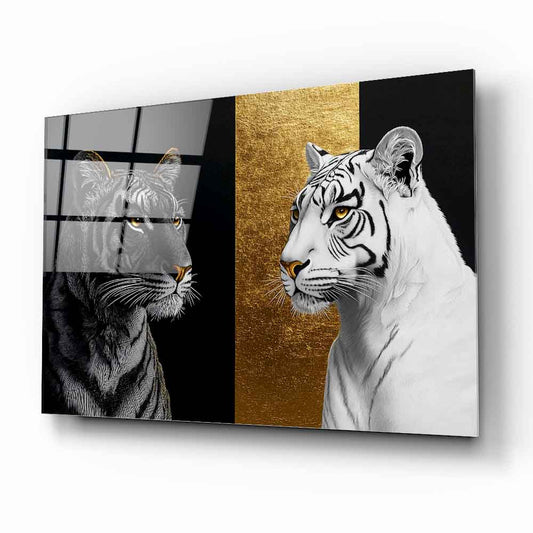 Siyah ve Beyaz Kaplanlar Cam Tablo