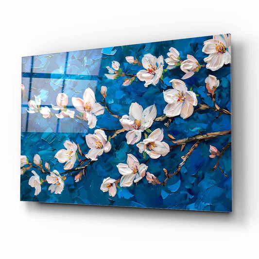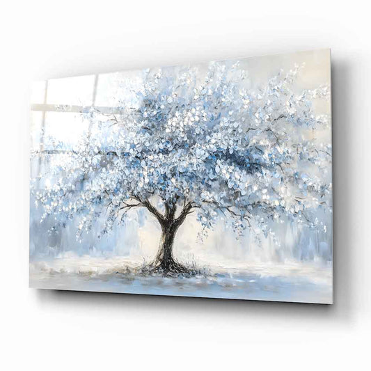 Mavi Beyaz Hayat Ağacı Cam Tablo