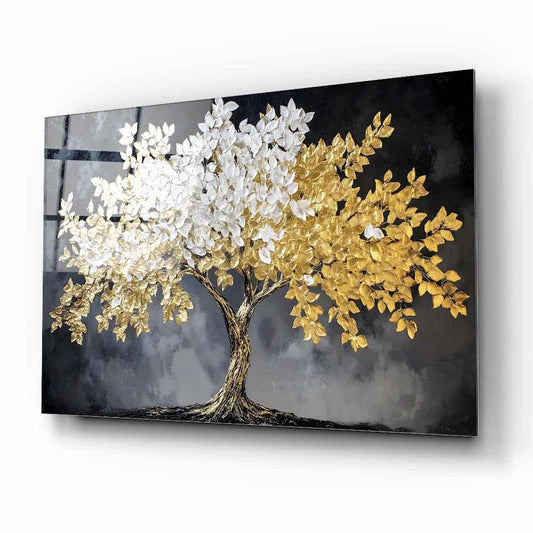 Gold Detaylı Hayat Ağacı Cam Tablo