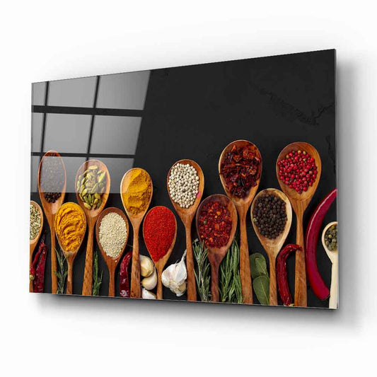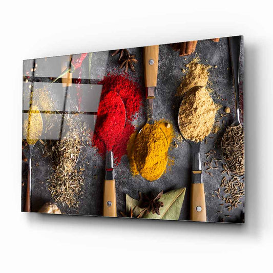 Kaşıklı Renkli Baharatlar Cam Tablo