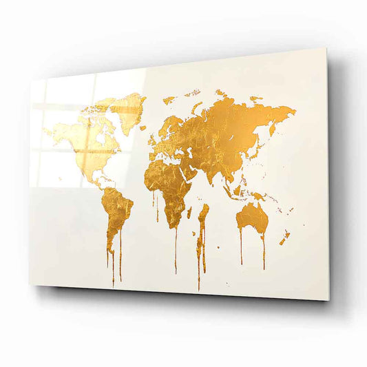 Gold Beyaz Dünysa Haritası Cam Tablo