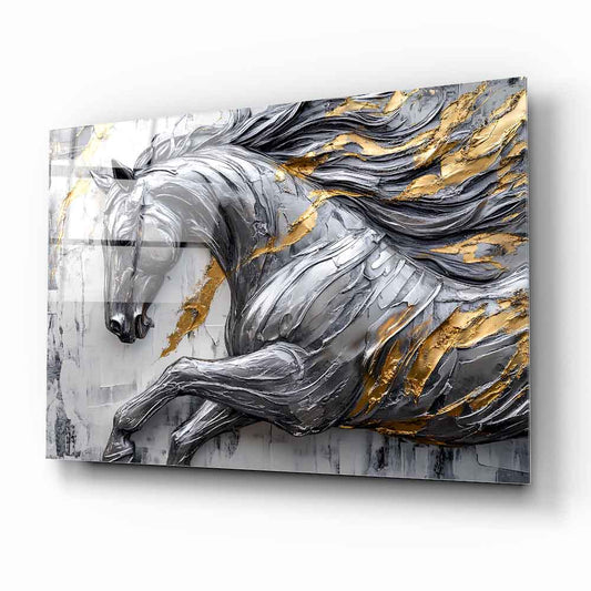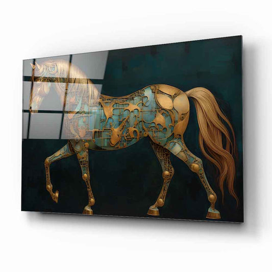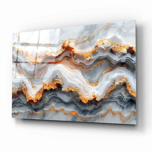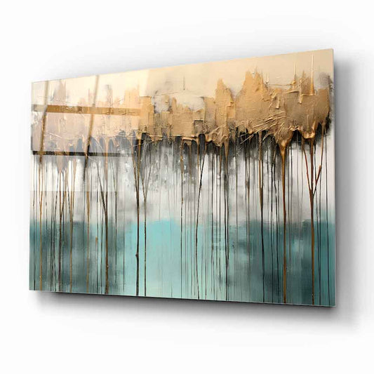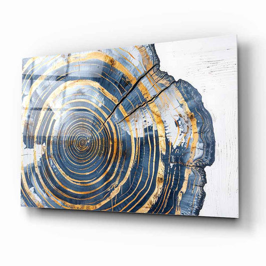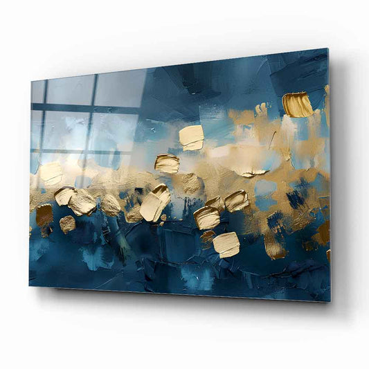 Mavi Gold Soyut Mermer Desen Cam Tablo