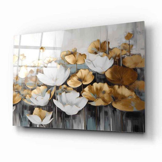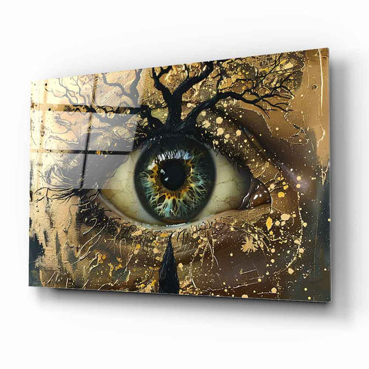 Gold Yapraklı Hayat Ağacı Cam Tablo
