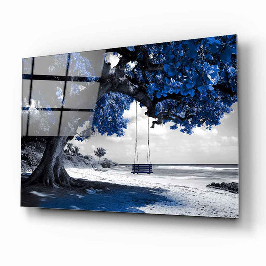 Okyanus Derinliği Soyut Mavi Cam Tablo