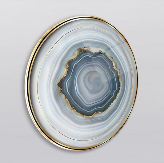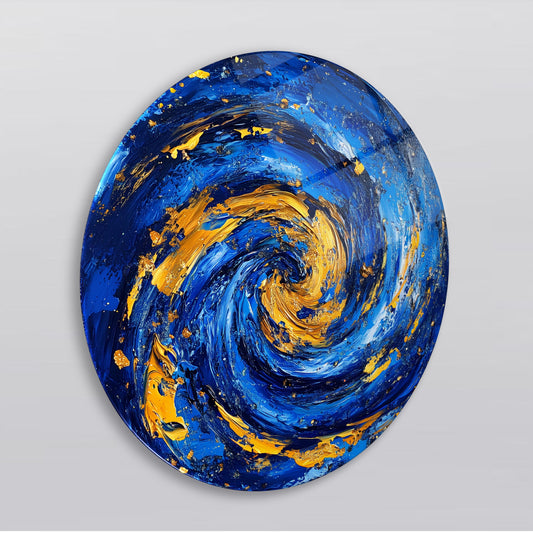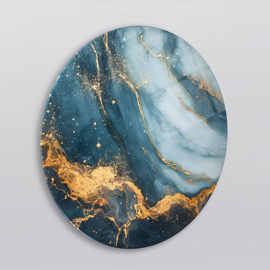 Mavi Gold Memrer Desen Yuvarlak Cam Tablo