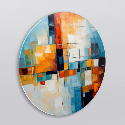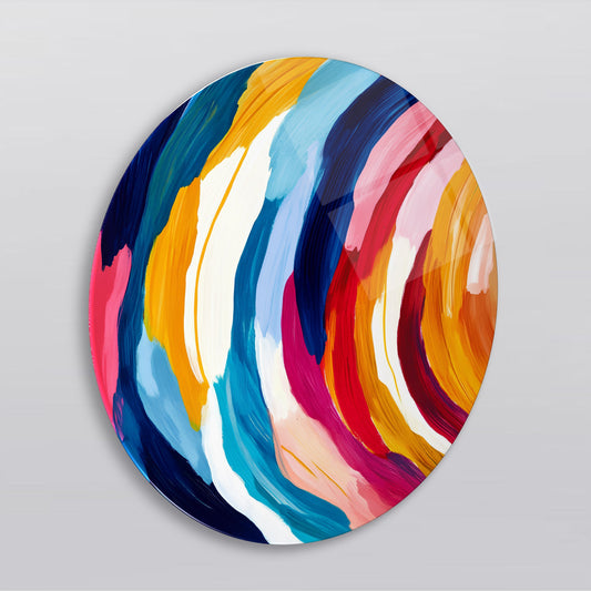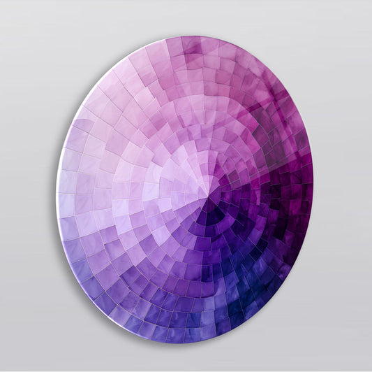 Mavi Mor Soyut Yuvarlak Cam Tablo