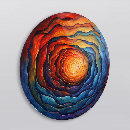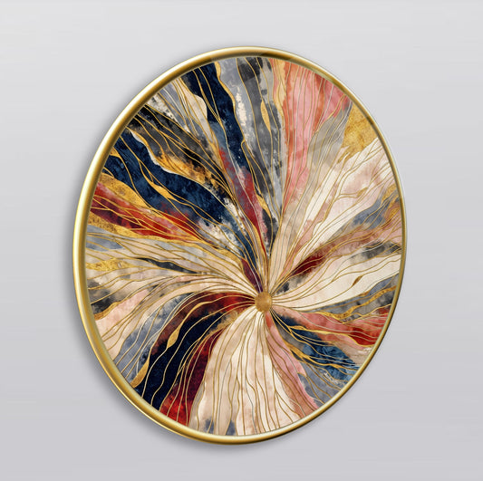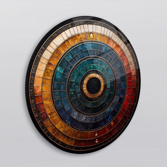 Soyut Etnik Desen Yuvarlak Cam Tablo