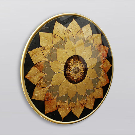 Gold Lotus Çiçeği Yuvarlak Cam Tablo